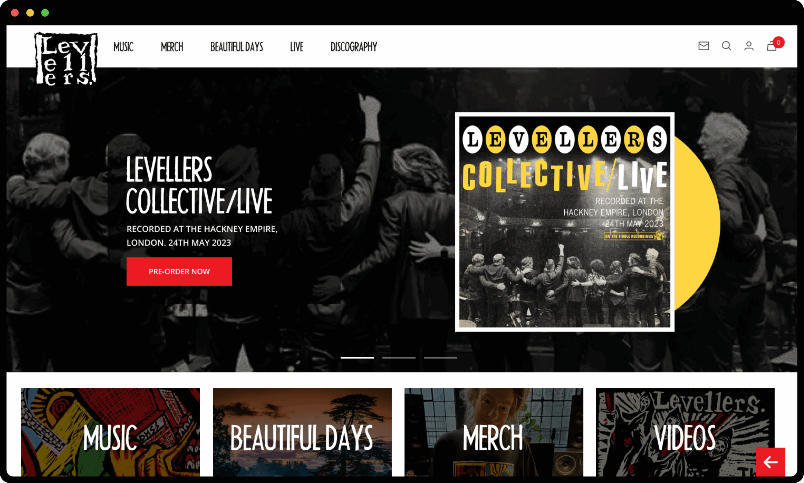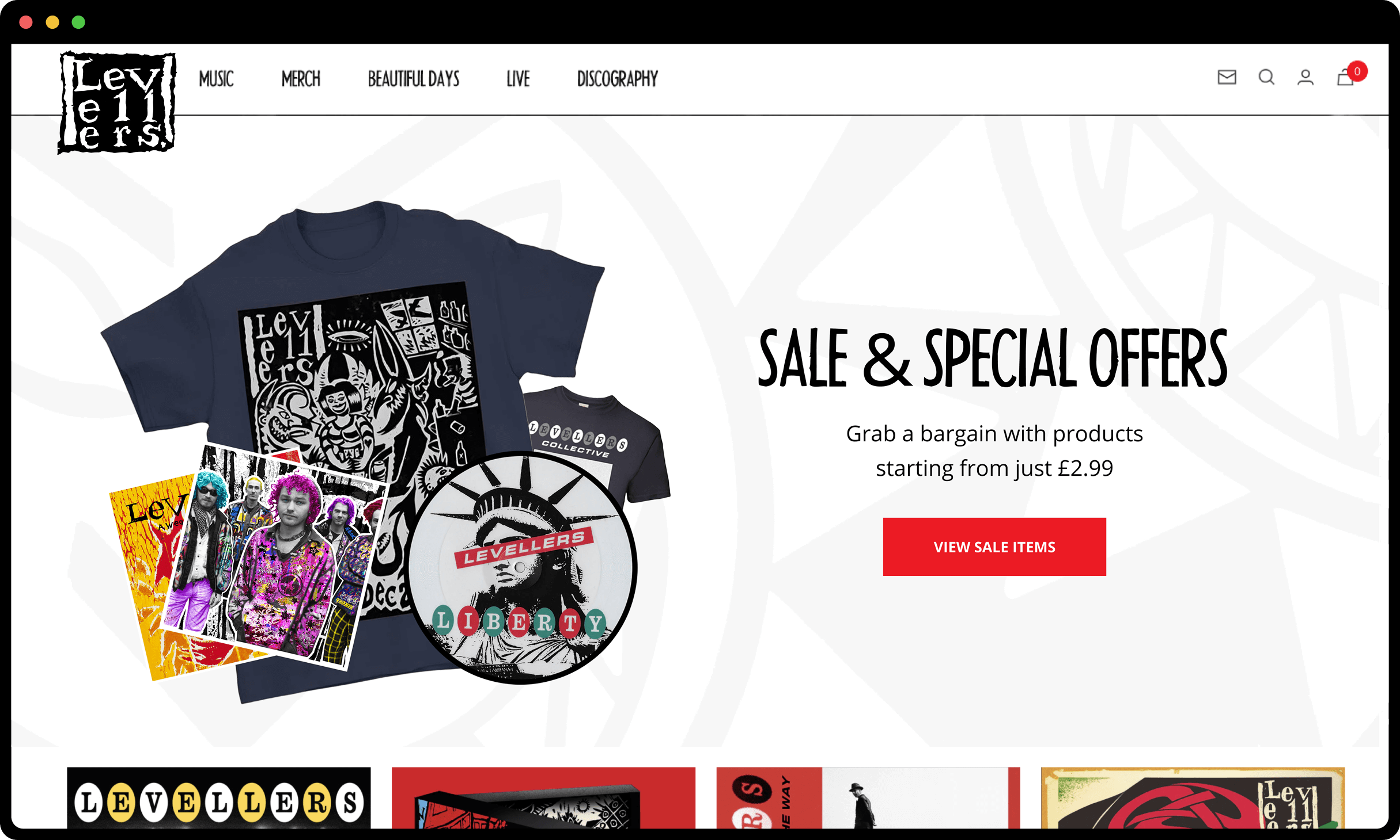 The revamped Beautiful Days section saw significantly higher engagement, and the improved navigation and checkout flows contributed to a more seamless experience for fans - and less manual handling for the Levellers’ team. The project has laid the foundation for ongoing improvements, with future phases planned to enhance the discography section, content strategy, and product merchandising.